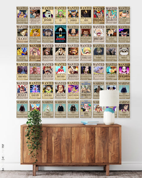 Become a part of the legendary search for the ultimate treasure with the One Piece Wanted Poster Set. This massive collection includes 54 individual posters, featuring everyone from the Straw Hat Pirates to the Four Emperors (Yonko), the Seven Warlords of the Sea, and even high-ranking Marine officers. Whether you are a fan of the classic East Blue sagas or the high-stakes battles of Egghead and Wano, this set covers it all.