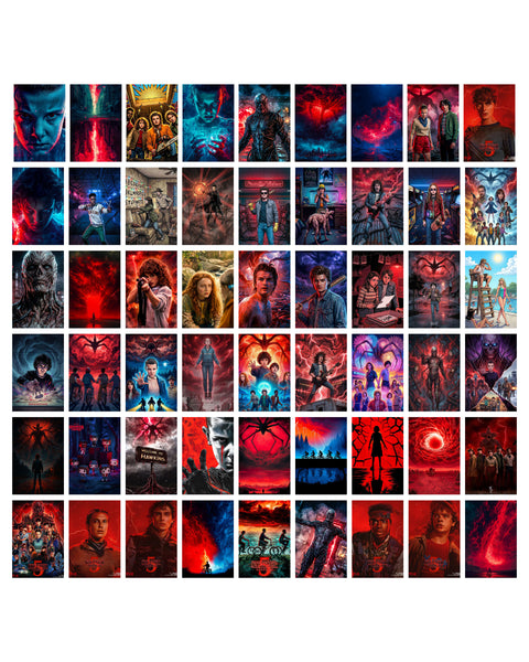 Turn your walls into a cinematic portal with the Stranger Things Collage Poster Set. This extensive collection features 54 individual posters that span the entire saga—from the initial search for Will Byers to the epic showdowns against Vecna and the Mind Flayer. Each print captures the series' signature 80s aesthetic, blending retro neon vibes with dark, atmospheric horror.