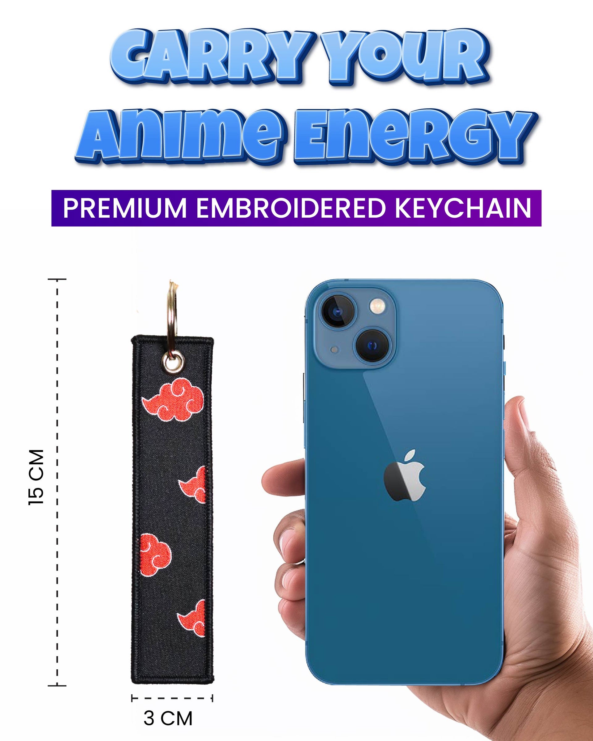 Made with high-quality embroidered fabric, this keychain features the iconic red Akatsuki cloud — a symbol recognized by every anime fan. Its durable metal ring and sleek stitched finish make it perfect for your keys, bike, or backpack.