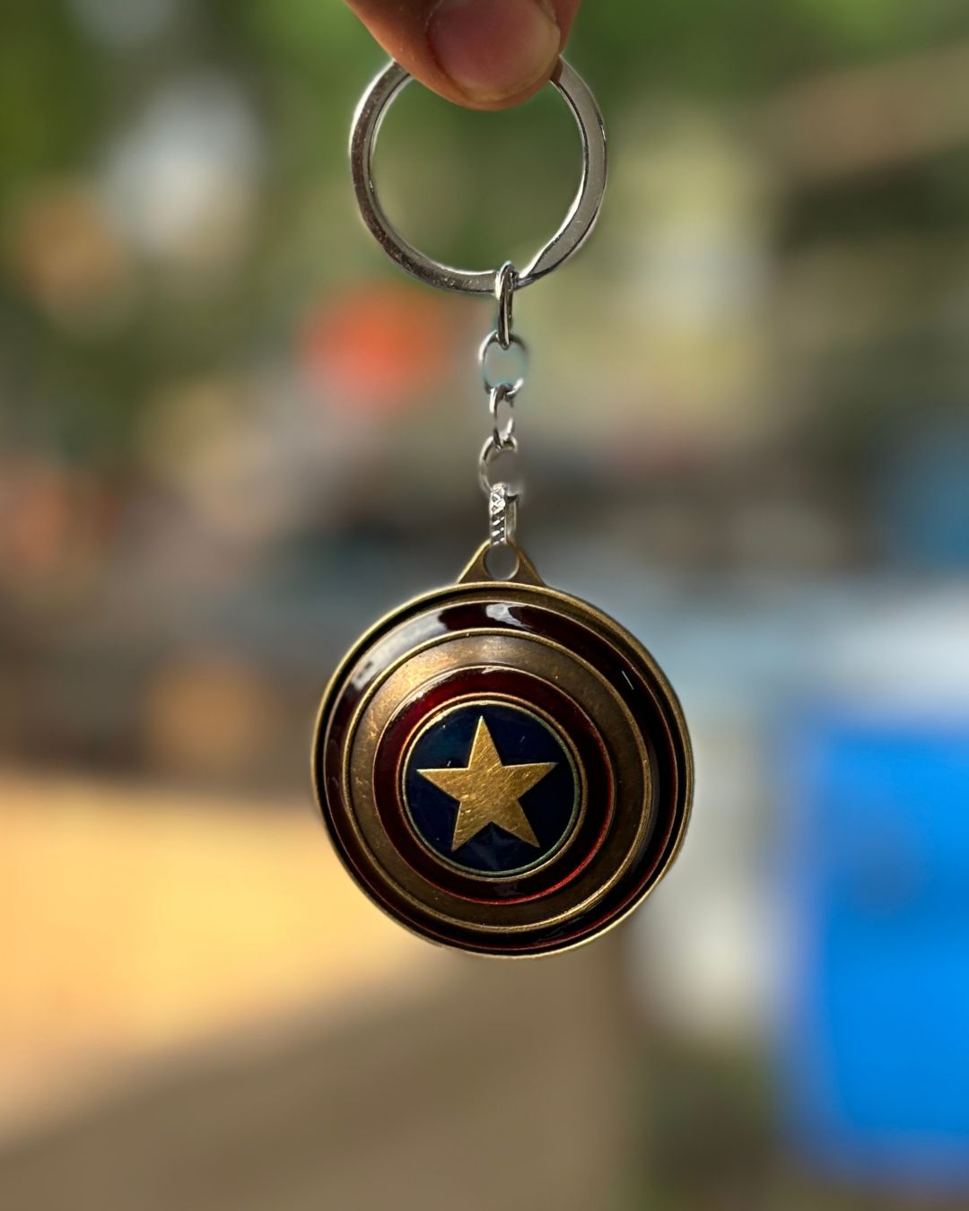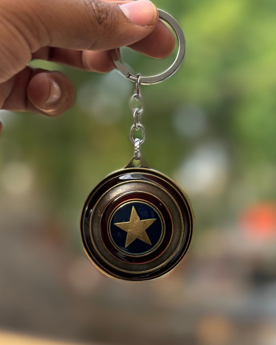 Carry a symbol of strength and justice wherever you go with the Captain America Shield Keychain. Designed with a vintage bronze finish and iconic star emblem at its core, this keychain is a must-have for Marvel fans who love timeless style and superhero legacy.