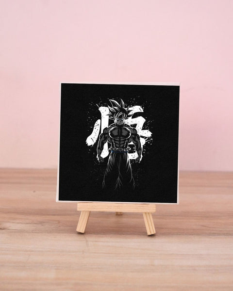 Printed on premium textured canvas and mounted on a compact wooden easel, this artwork is the perfect addition to your anime shelf, desk, or studio space. Whether you're a lifelong Saiyan fan or just love powerful minimal design, this canvas delivers style and strength in one bold stroke.