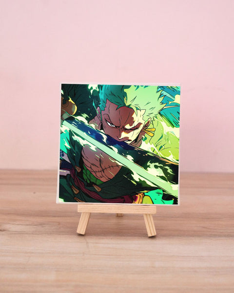 Honor the discipline, strength, and loyalty of the Pirate Hunter with the “Zoro – Three Sword Style Canvas with Stand.” This vibrant artwork showcases Roronoa Zoro from One Piece in his signature battle stance — sword drawn, eyes sharp, and green haki energy radiating from his blade. The intense lighting and fluid motion give this piece an electrifying presence.
