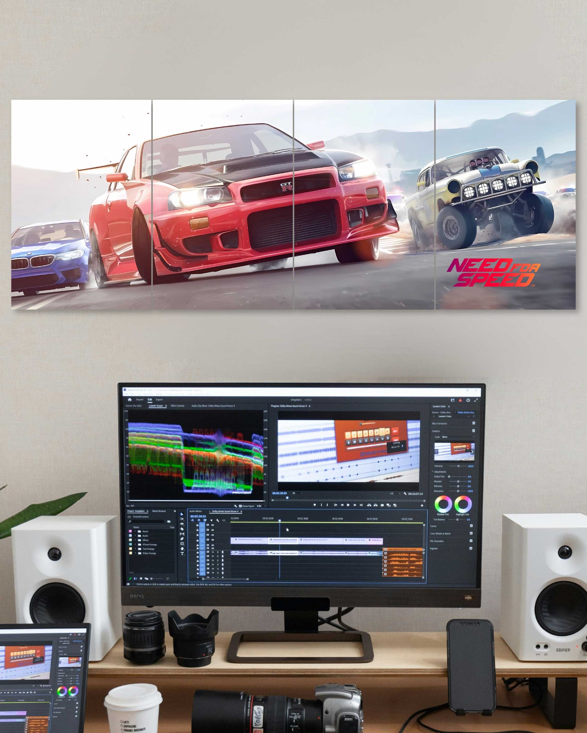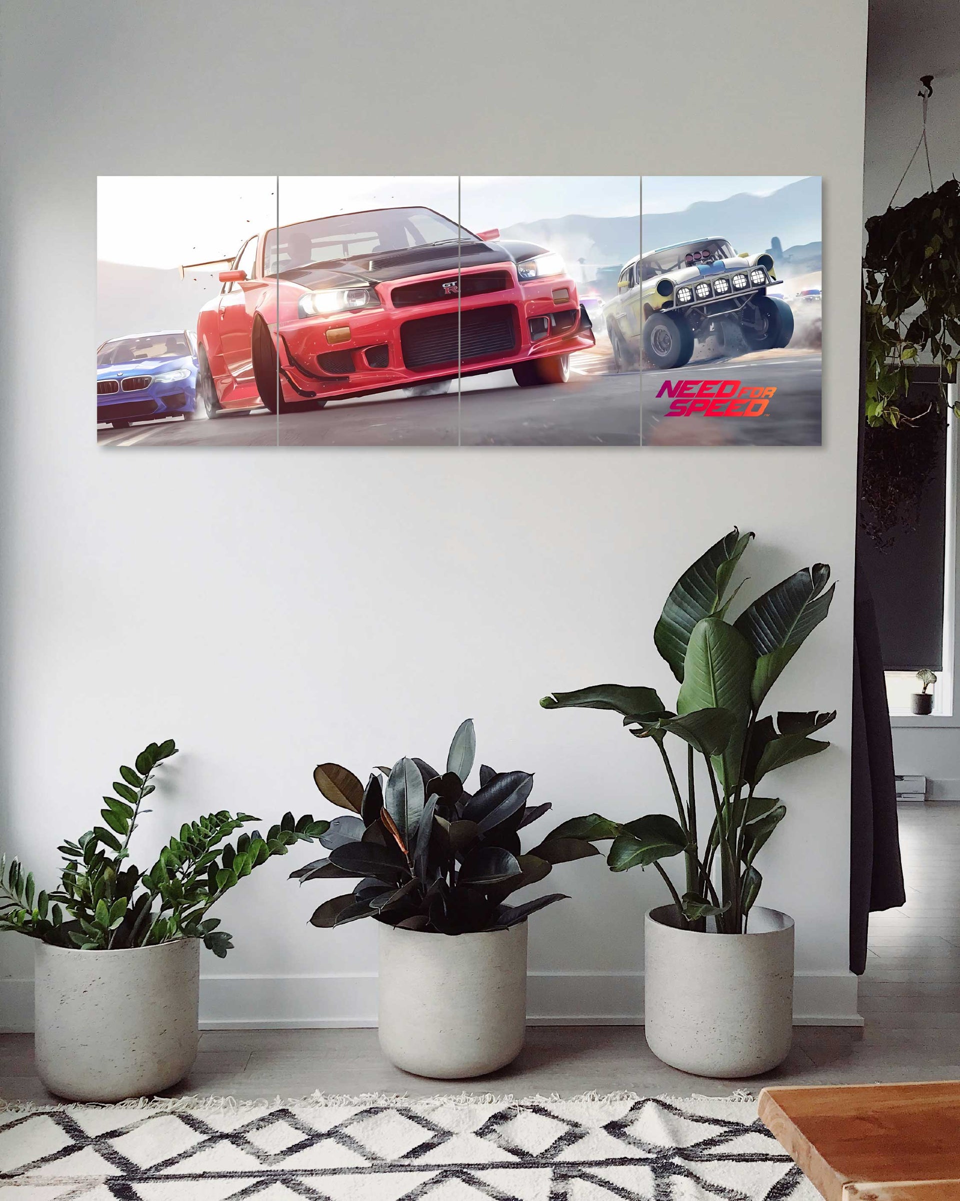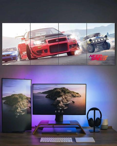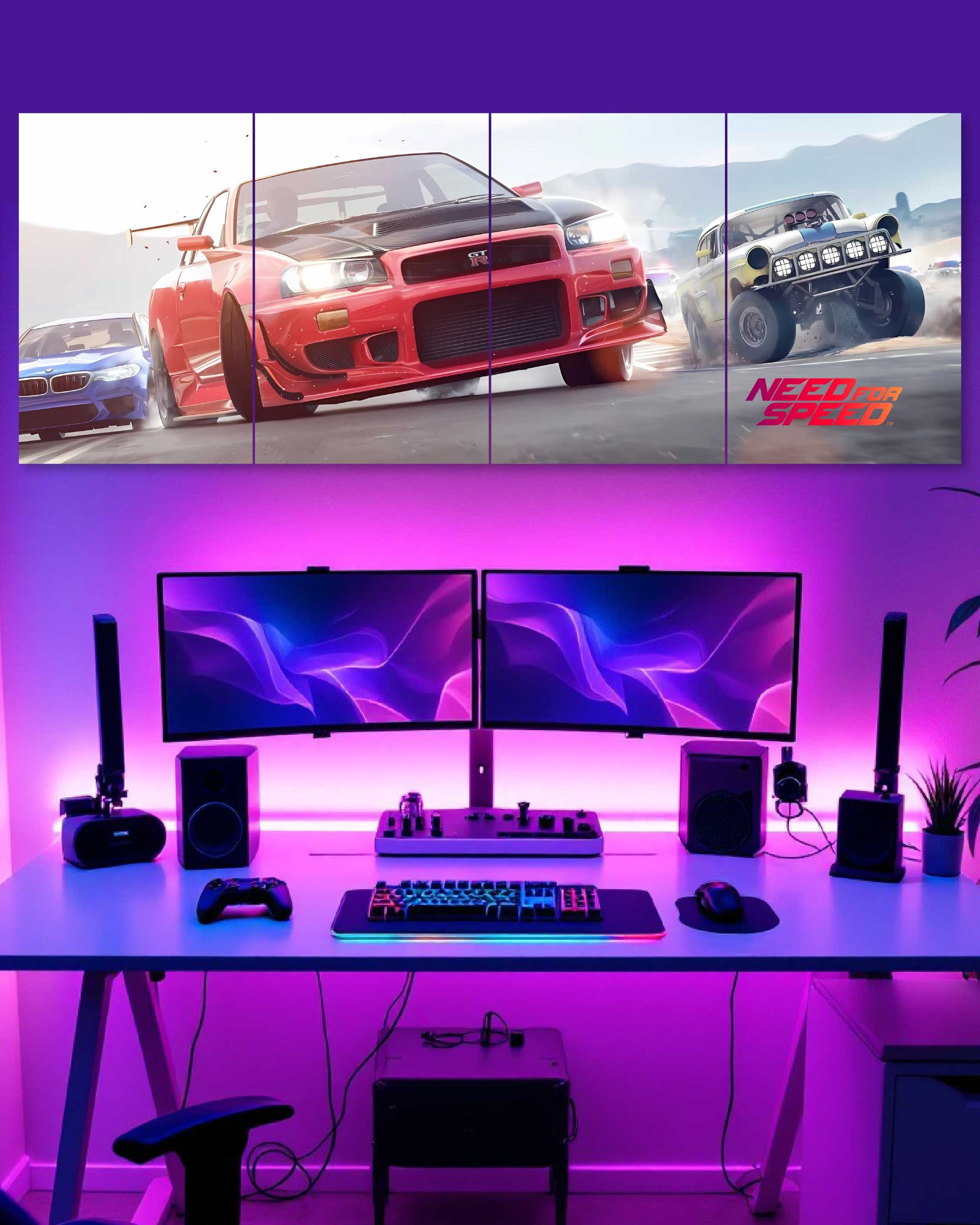 Split Design: Features a multi-panel layout that enhances the sense of motion and speed, providing a sleek, modern racing game decor aesthetic.