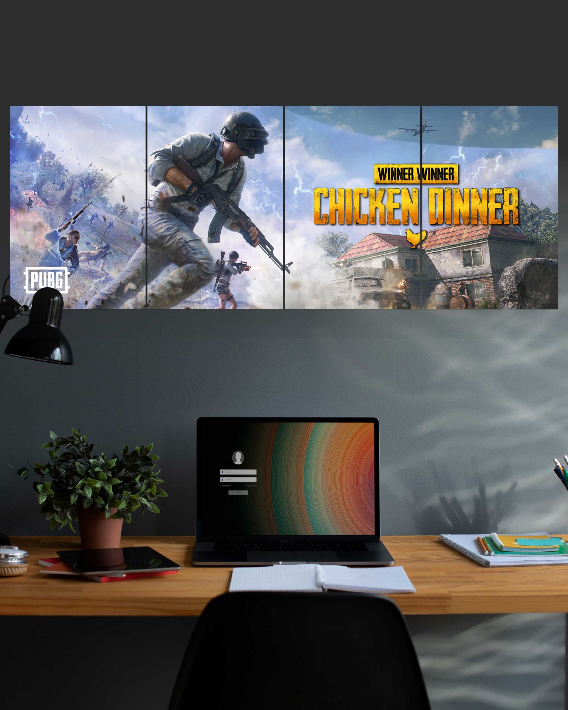 This imposing 4 feet by 1.5 feet multi-panel piece instantly transforms your gaming room into a true Battlegrounds environment. It's an essential piece of Battle Royale decor for both PC and mobile players who know the thrill of surviving to the very end.