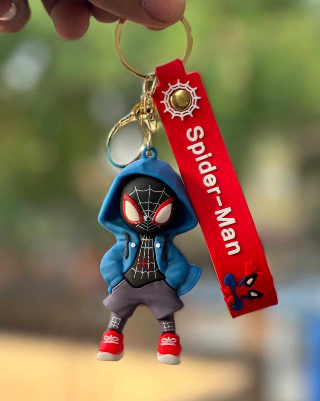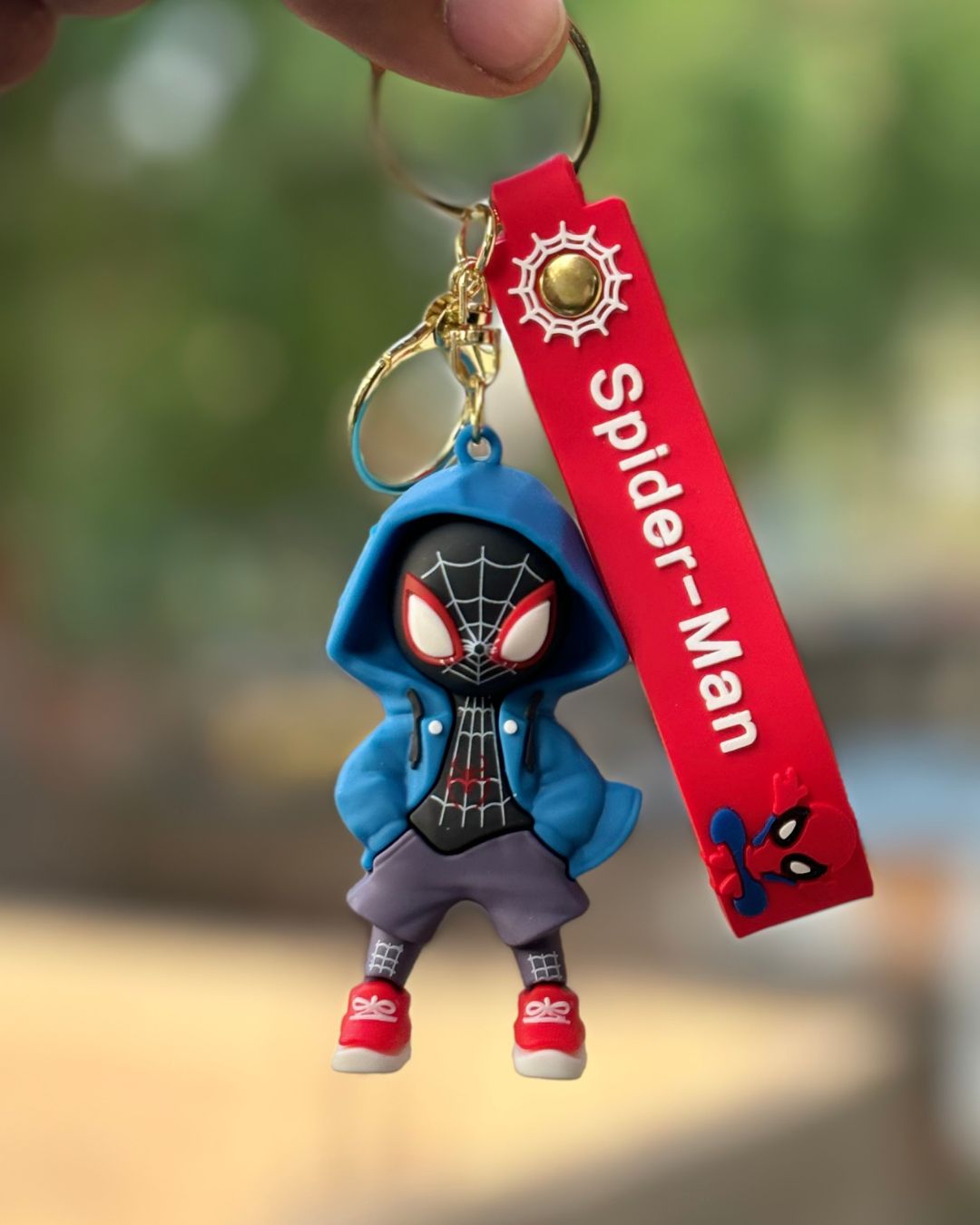 Swing into style with the Miles Morales Spider-Man Keychain! Featuring a streetwear-inspired look with hoodie, shorts, and kicks, this bold figurine captures the essence of the multiverse's coolest Spidey. The bright red strap with Spider-Man branding and mini 3D emblem adds the perfect heroic touch to your keys or backpack.