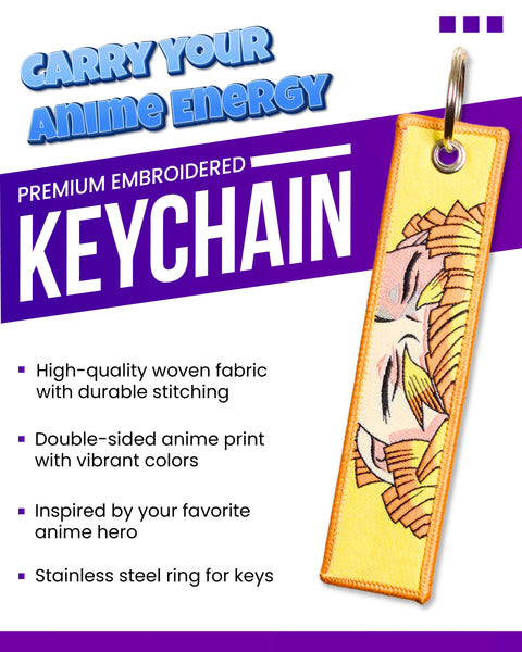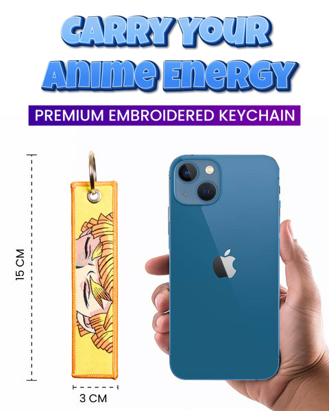 Made from premium embroidered fabric, this keychain captures Zenitsu’s electric personality and signature lightning design in stunning detail. The soft yet sturdy material ensures long-lasting quality, while the bright yellow hues and precise stitching make it a standout accessory for any anime fan.
