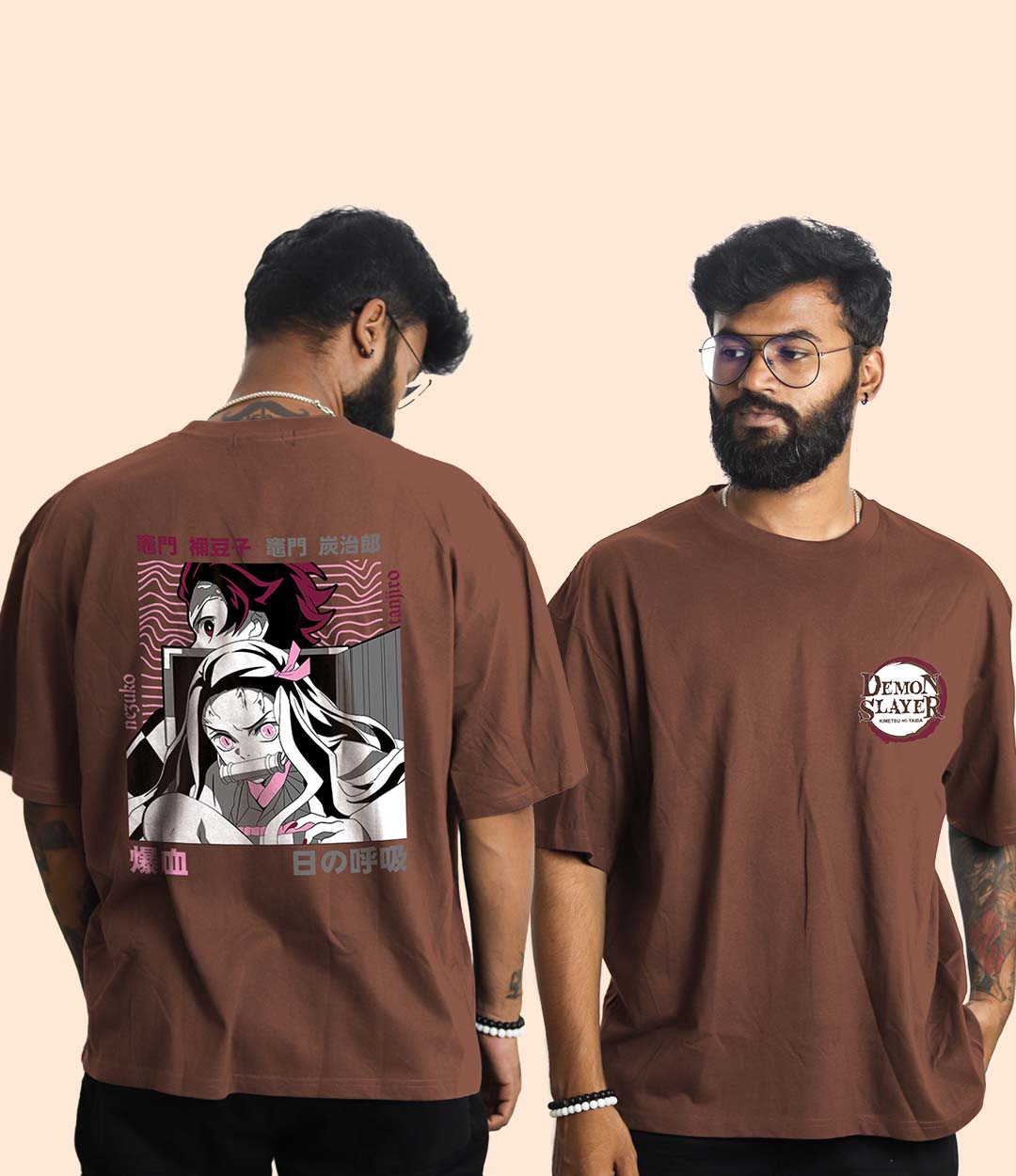 Comfort: Sink into pure bliss with our Demon Slayer: Tanjiro and Nezuko oversized t-shirt. The soft, breathable fabric and generous cut create an unmatched level of comfort. Perfect for casual wear, binge-watching, or simply unwinding, this t-shirt is your go-to choice for relaxation.