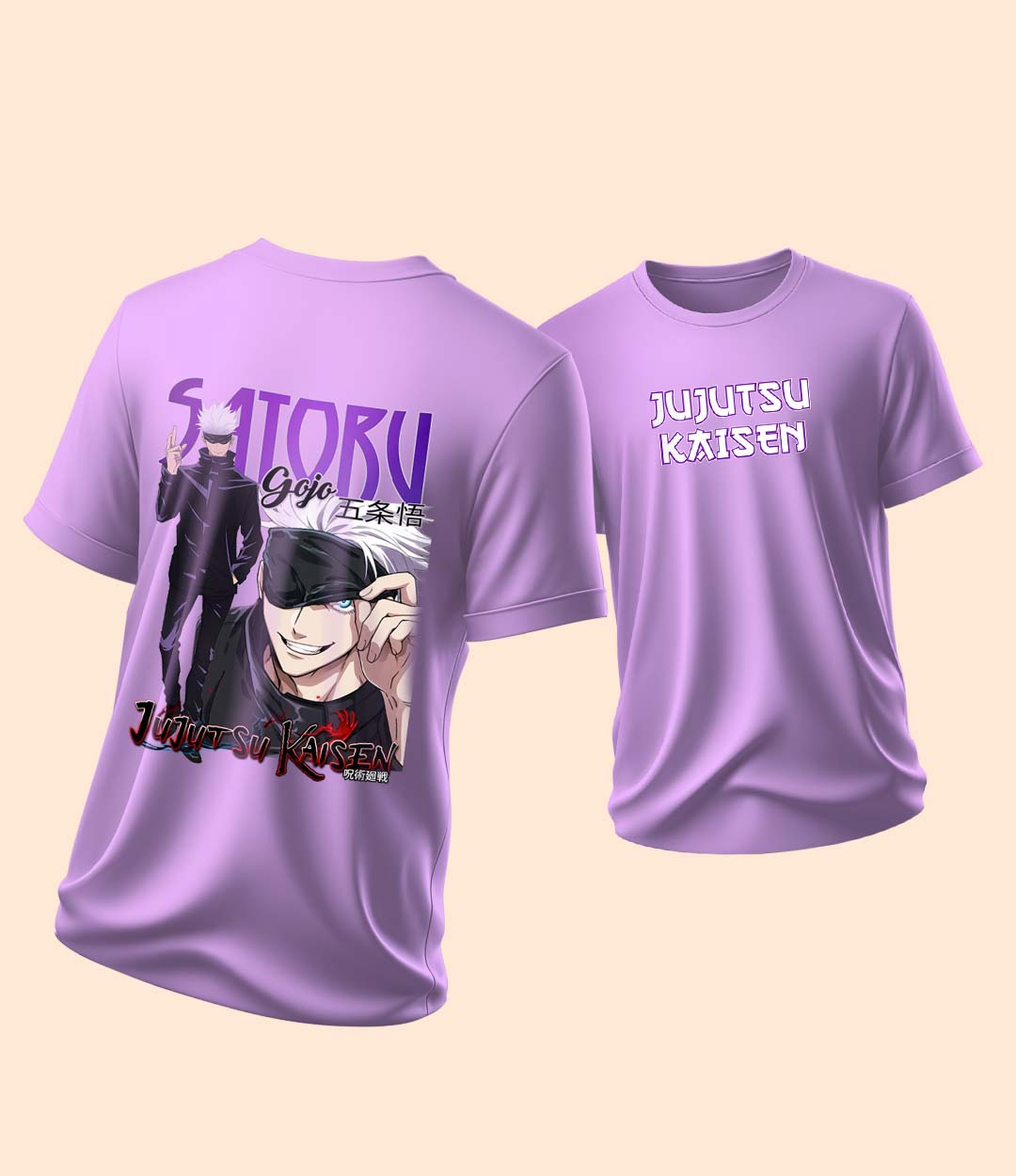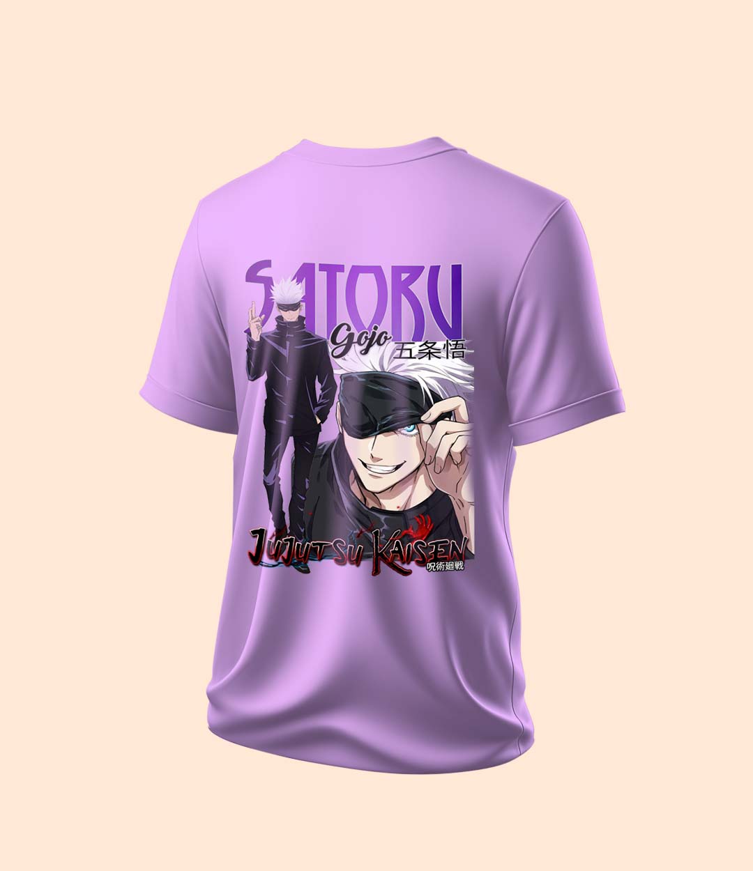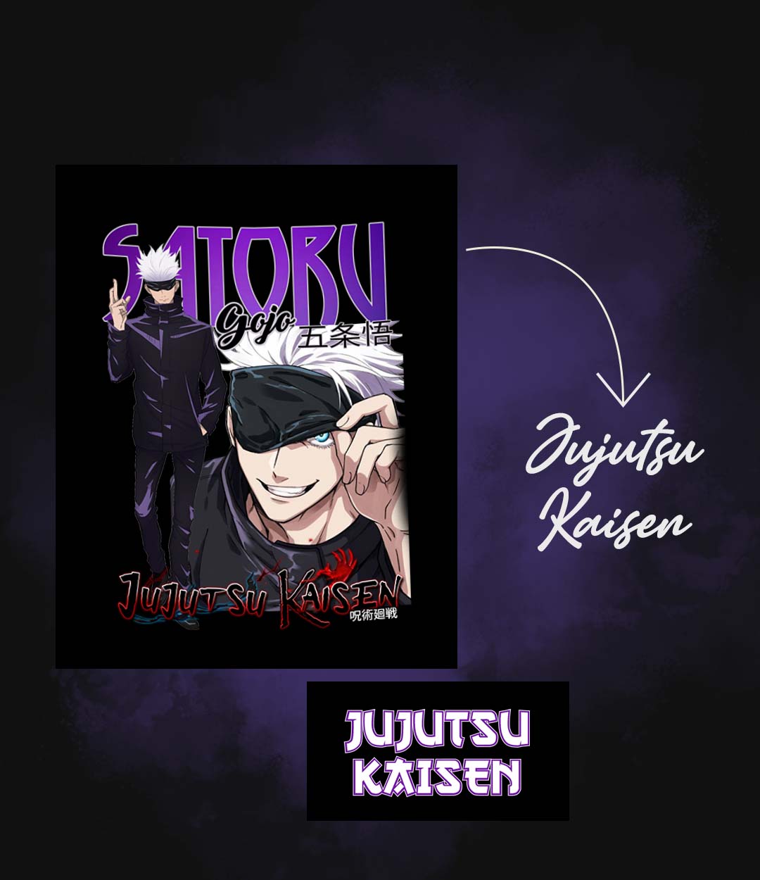 Design: Unleash your inner sorcerer with this captivating design featuring the enigmatic Gojo Satoru. From his signature blindfold to his limitless power, this t-shirt captures the essence of the Jujutsu Kaisen powerhouse. Every detail is meticulously crafted to bring the character to life, making it a must-have for any fan.