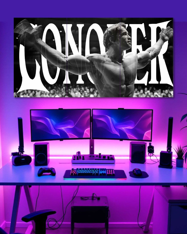 Arnold Schwarzenegger Conquer Split Poster - (4 feet by 1.5 feet)