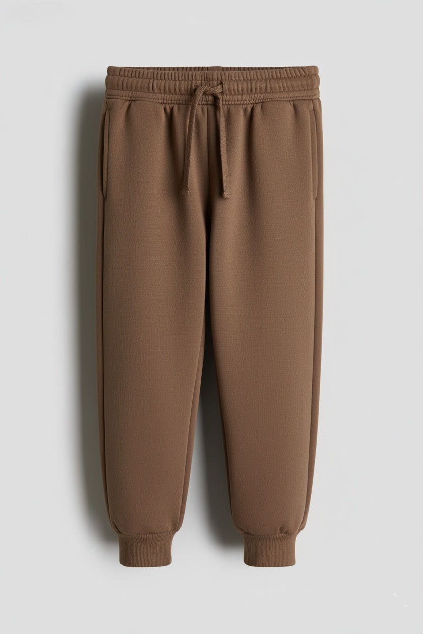 Keep your little one stylish and comfortable with these classic brown joggers for kids. Designed with a soft fabric blend, elastic waistband, and adjustable drawstring, these joggers are perfect for school, play, or casual outings. The ribbed cuffs ensure a snug fit, while the neutral brown shade makes it easy to pair with any top or hoodie.