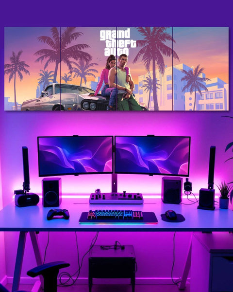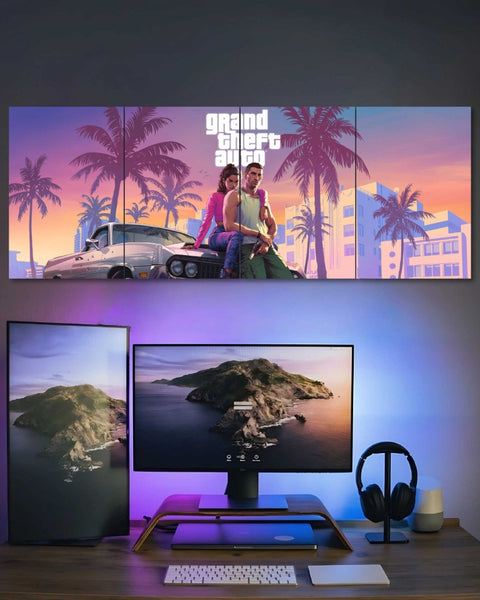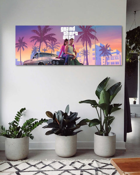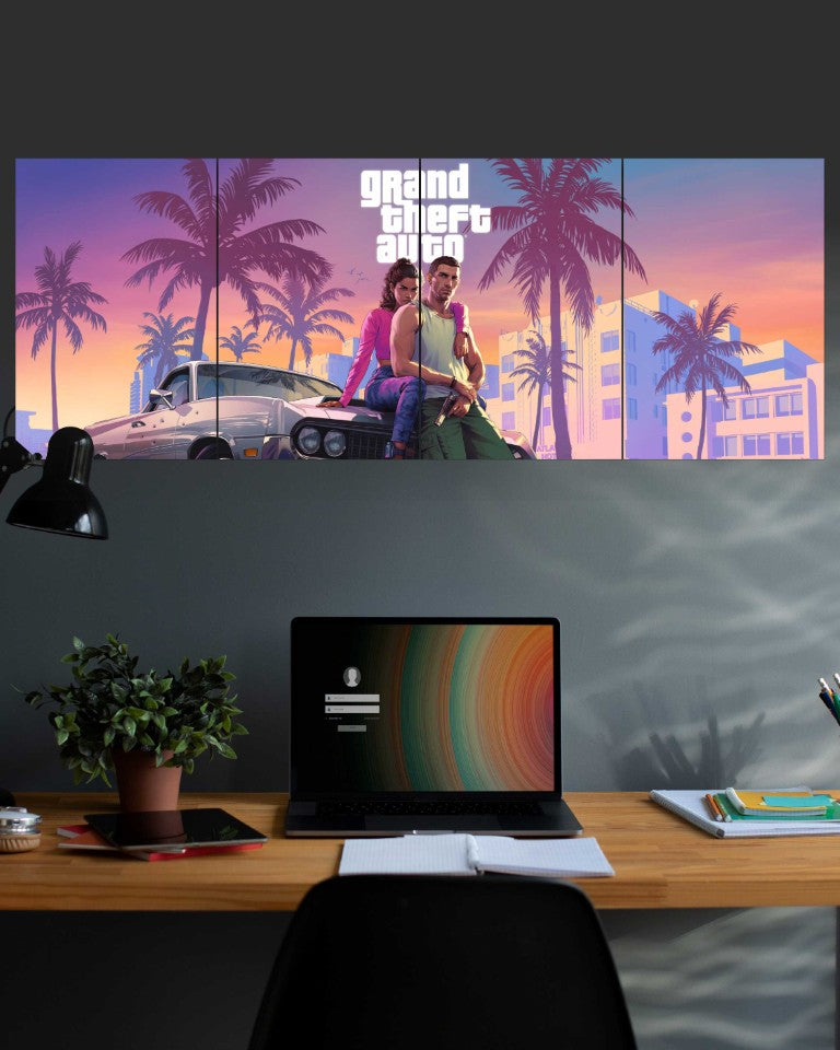 Printed on premium 300 GSM art paper and crafted in a 4-panel split layout (A3 panels, total size 48 x 18 inches), this GTA 6 poster for room offers vibrant detailing, sharp colors, and a matte finish that elevates your décor instantly.