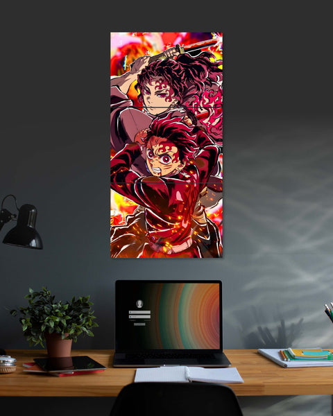 Witness the ancestral power of the Sun Breathing technique with the definitive Tanjiro and Yoriichi Vertical Split Poster. This profound wall art captures the dynamic connection between the protagonist, Tanjiro Kamado, and the greatest Demon Slayer in history, Yoriichi Tsugikuni. Itβs a powerful visual tribute to the origin of the Hinokami Kagura and the eternal fight against the Demons.