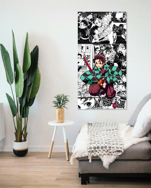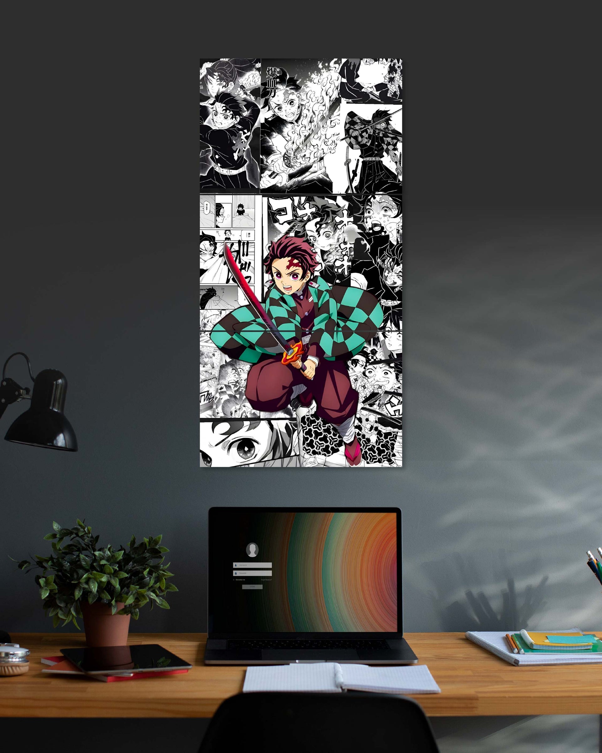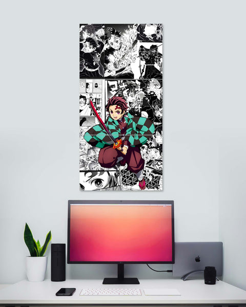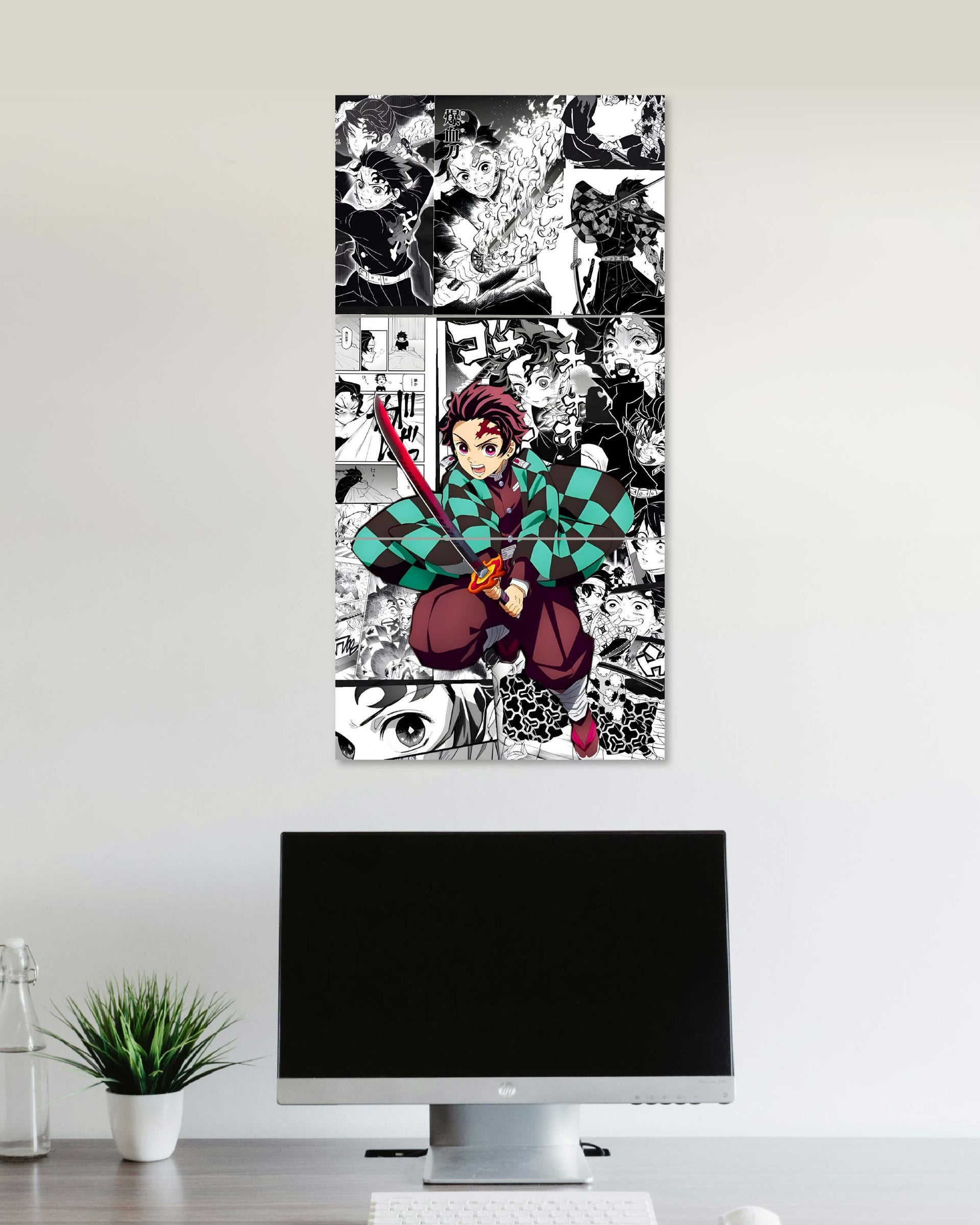 Follow the path of the Demon Slayer Corps' most compassionate member with this stunning Tanjiro Kamado Manga Vertical Split Poster. This dynamic wall art captures Tanjiro mid-action, Nichirin Blade in hand and his checkered haori billowing, surrounded by an intense collage of original Demon Slayer manga panels. Itβs the ultimate tribute to the hero and his relentless quest to save his sister.