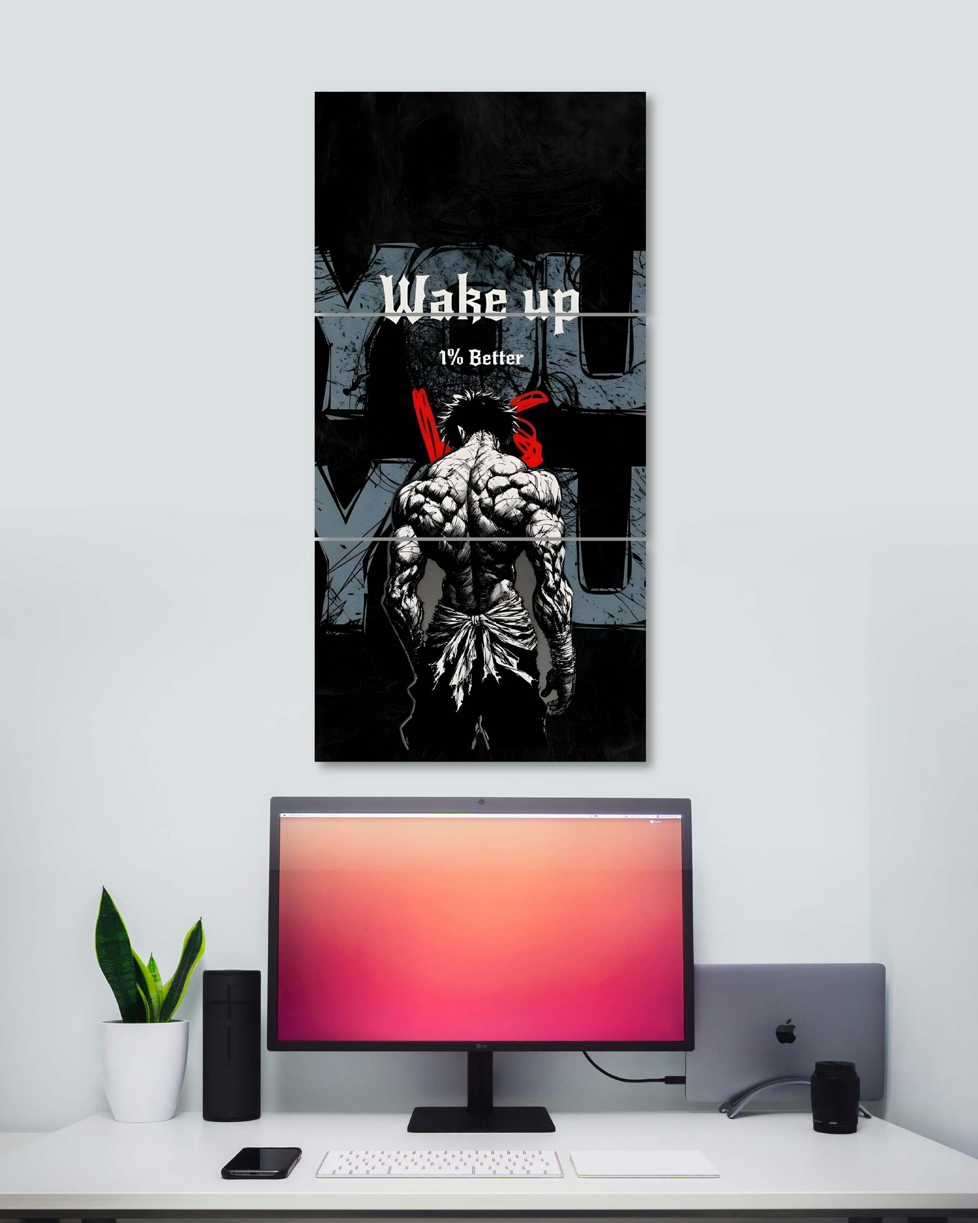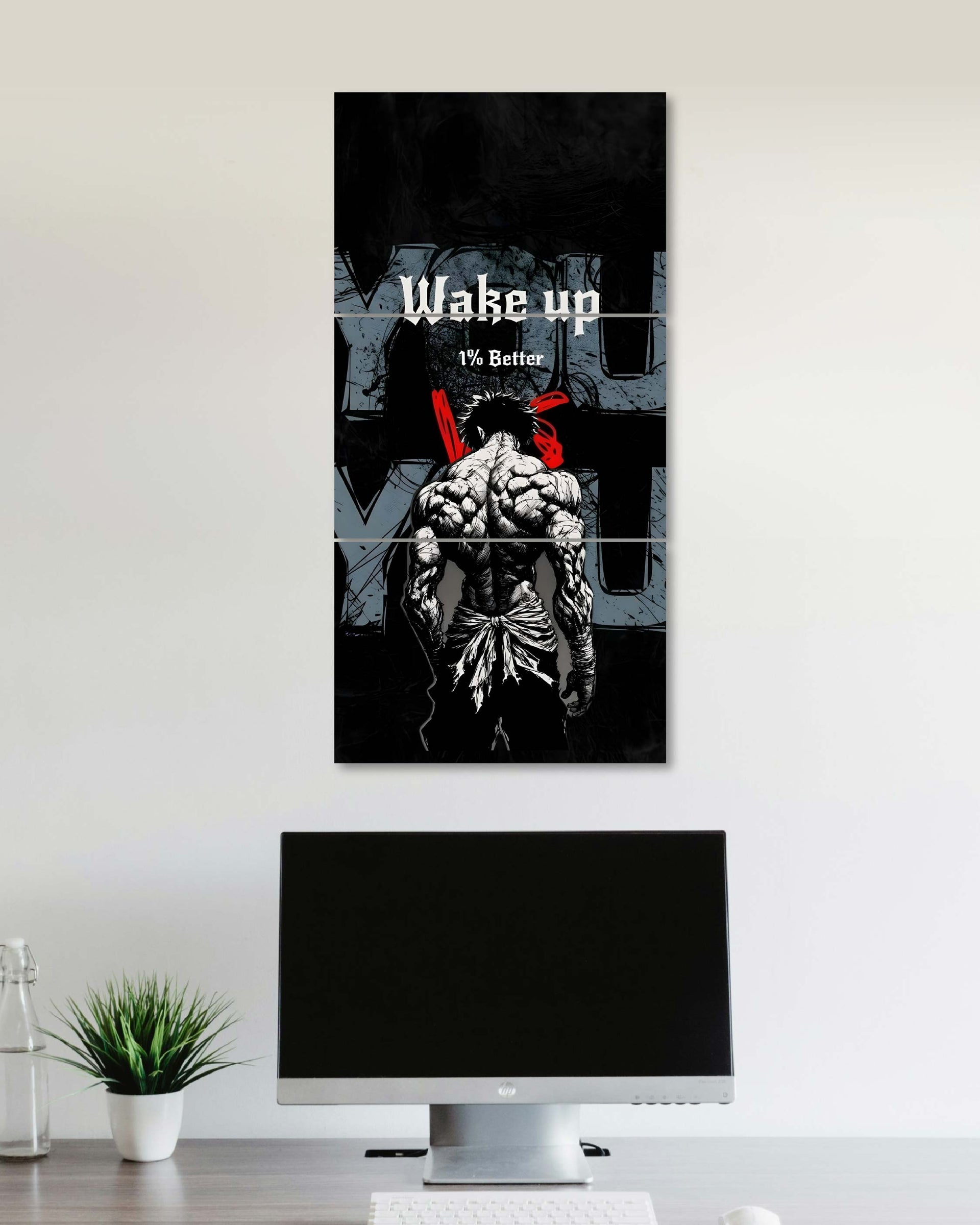 Fuel your discipline and dominate your goals with the powerful You vs You Vertical Split Poster. This intense artwork features a warrior physique and the central, actionable mantra: "WAKE UP 1% BETTER." Itβs a daily, undeniable reminder that progress is cumulative and the real victory is over your former self.